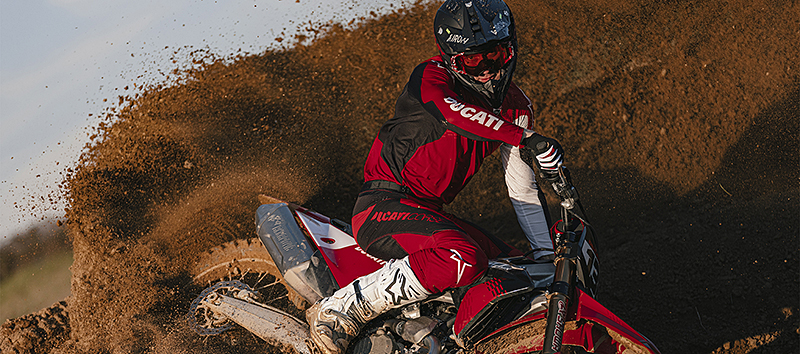 Desmo450 MX Factoryはピュアなコンペティションモデルです。高性能サスペンション、アクラポヴィッチ製のレーシングエキゾースト、高度な電子制御、そしてデスモドロミック機構をさらに磨き上げ、生まれながらにしてレースへの準備が整った1台です。より軽く、より速く。スタートゲートへ向かうライダーに必要なすべてを備えています。